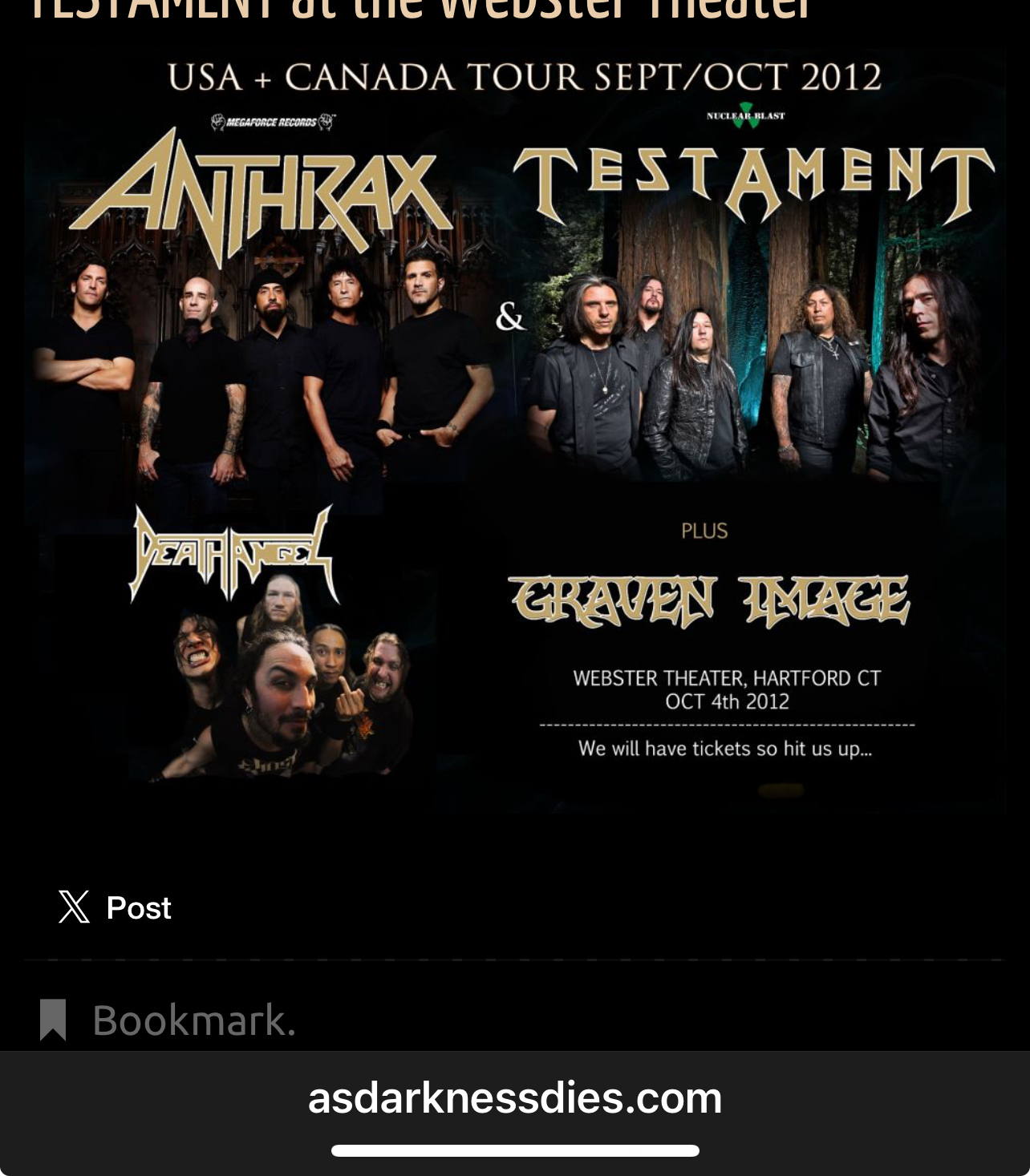 Graven Image opens for ANTHRAX & TESTAMENT at the Webster Theater.