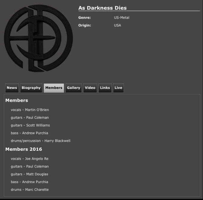 The new members of As Darkness Dies have been added to the Pure Steel Records band page!